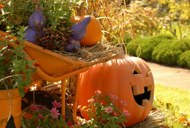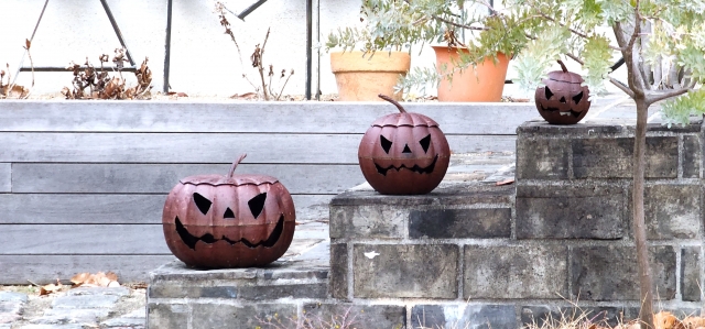 ジャック・オー・ランタンやかぼちゃを置くだけでも、いつものお庭がぐっと華やかになります。