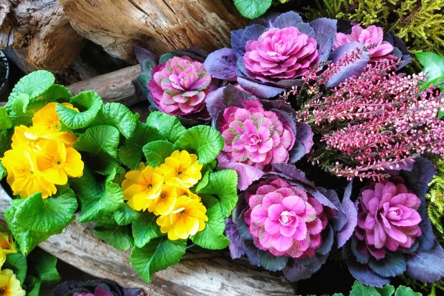 また、葉牡丹やクリスマスローズ、常緑の低木などを組み合わせれば、花が少なくても見応えのある寄せ植えが完成します。
