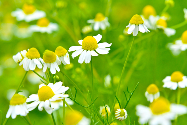 カモミールティー: 乾燥させた花をお茶にします。寝る前に飲むと、リラックス効果でスムーズな入眠を促し、冷えによる不眠の改善にも役立ちます。