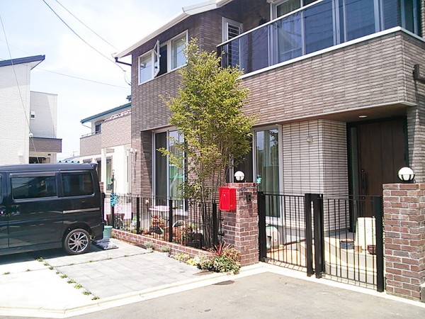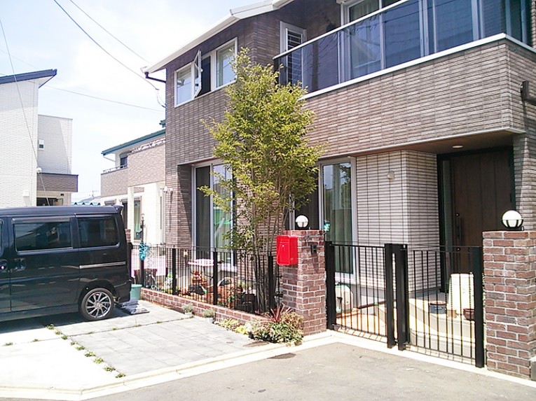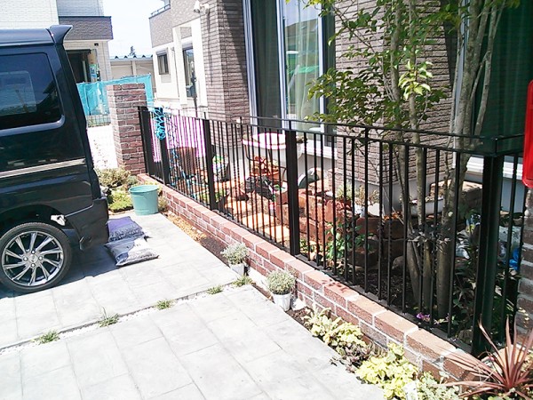 建物がタイル貼りで、ガーデンもそれなりに重厚感を必要とされる思いました。ハウスメーカーの提案とお客様の希望が塗り壁をメインとするモダンスタイルでしたが、私の感じたイメージは違いました。高級感のあるタイル調を引き立てるものとしてアイアンを選びました。建物とアイアンを調和してくれる、植物たちがやさしく引き立ててくれてます。
